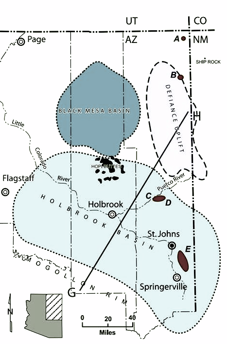 The Holbrook Basin is located in the eastern and central area of Arizona on the Colorado Plateau. PetroSun holds leases in Navajo, Apache and Coconino Counties where helium has been proven to exist over part of the south west flank of the defiance uplift, commonly within nitrogen and C02 deposits.